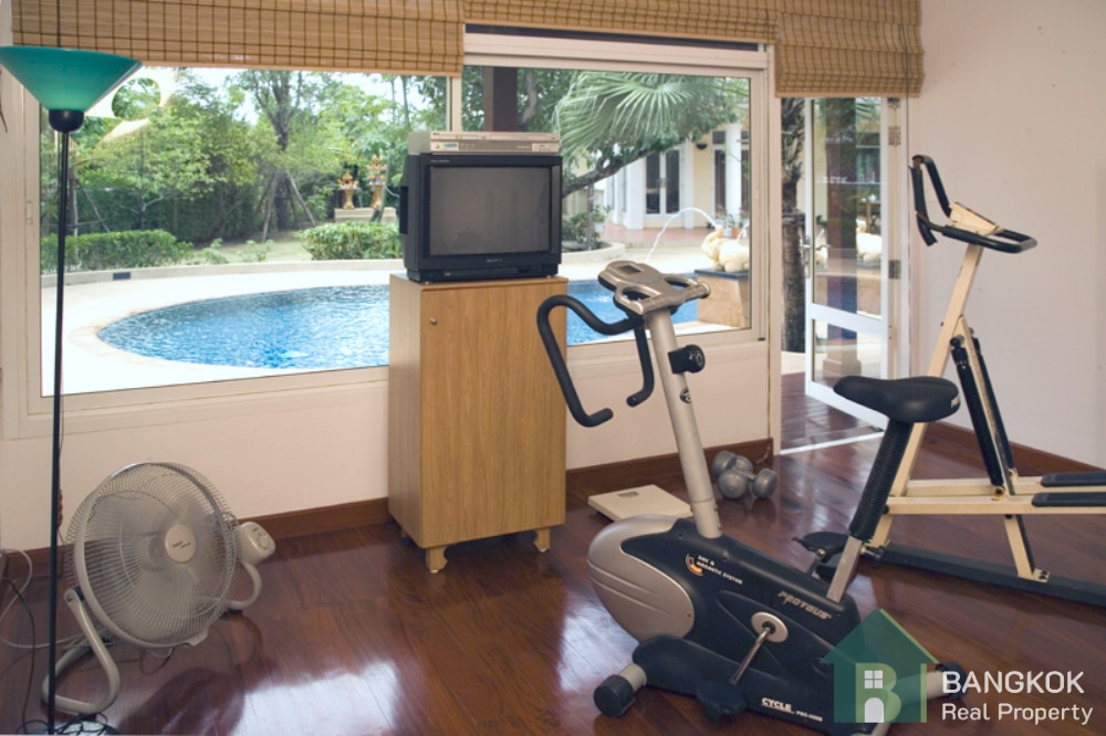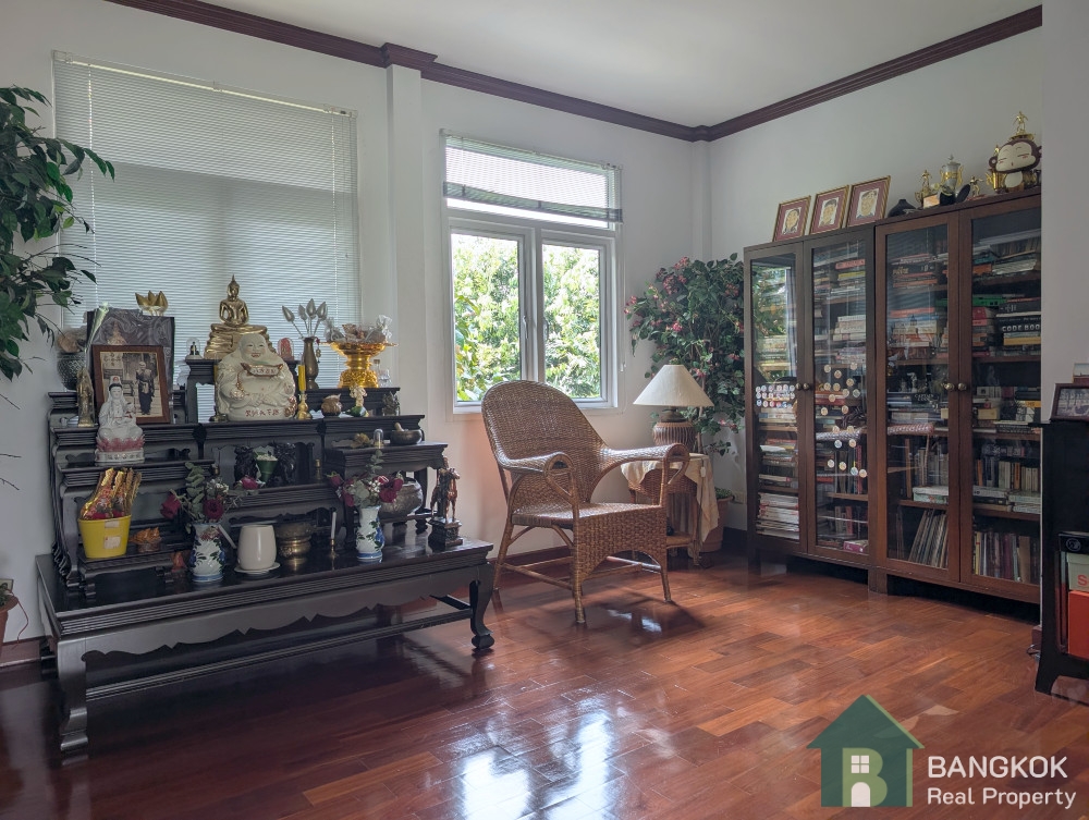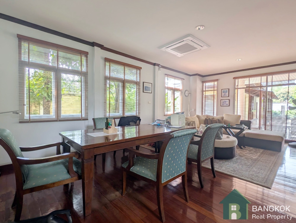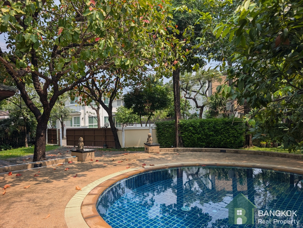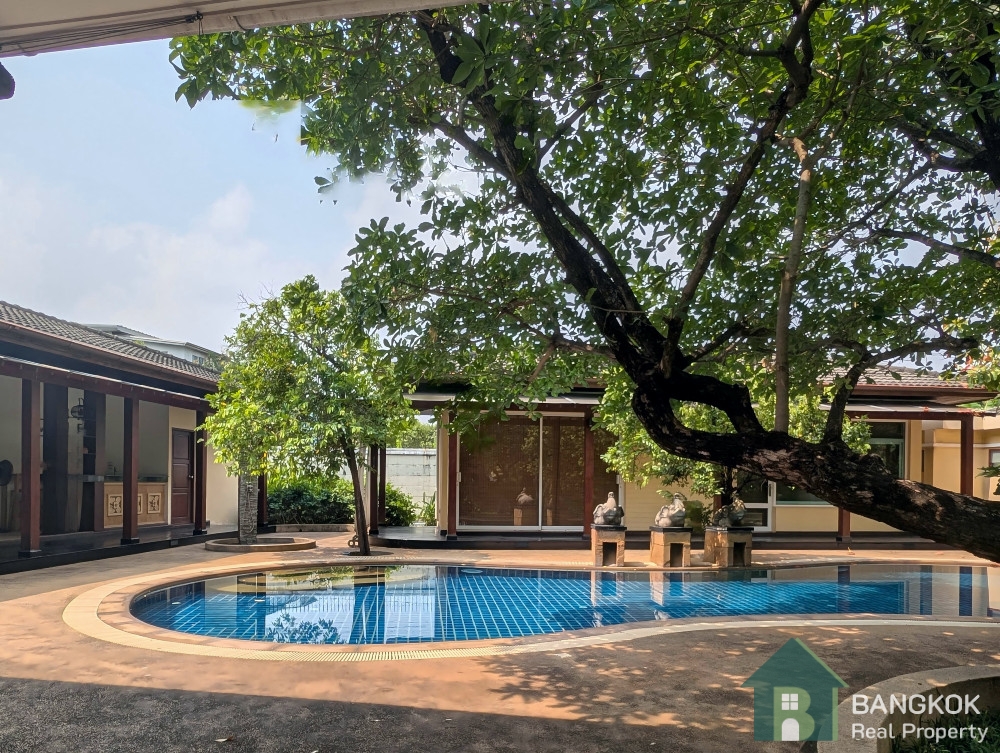 This detached family home compound with private swimming pool is available for Sale in Baan Ladprao Village conveniently located just off Soi Yothin Phatthana 11, adjacent the Crystal Design Center (CDC) and the Chalong Rat Expressway. The Village built in 2003 by Golden Land Property Development has a variety of local amenities at hand including Central Eastville, NIVA American International School and MRT Lat Phrao 83 (Yellow Line) is a short drive away.