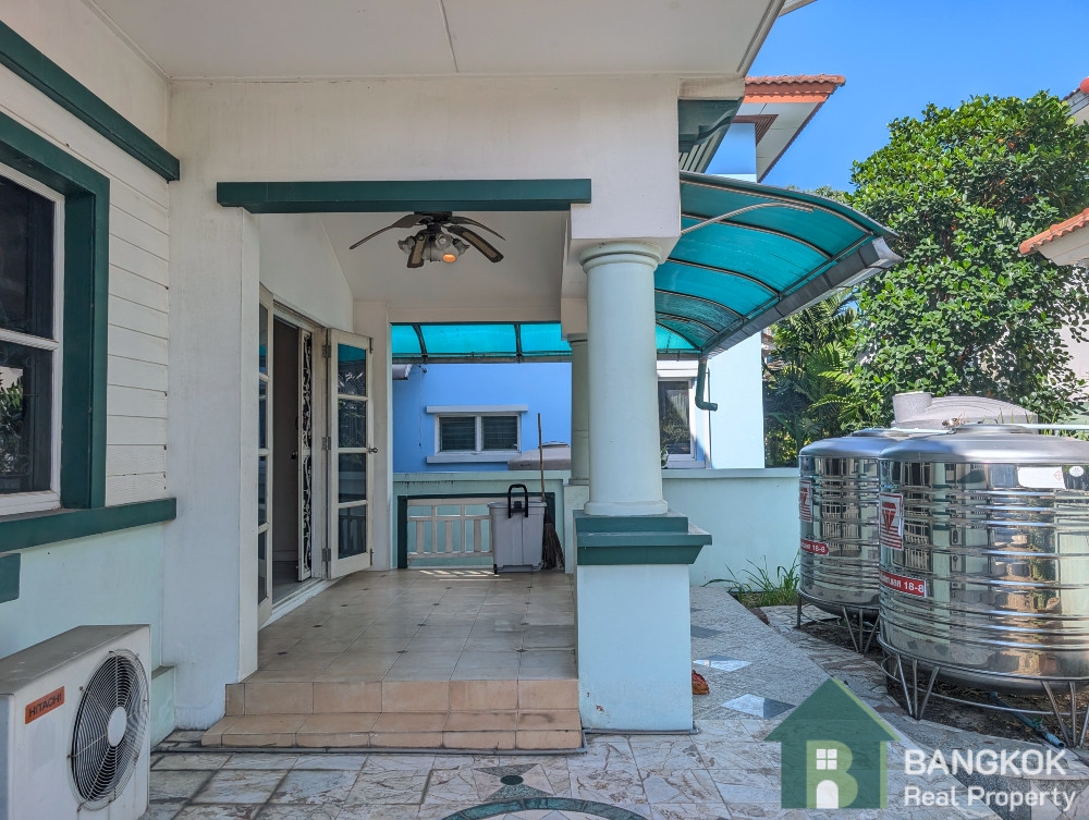 Built in 2001 by Land & House, this secure development offers residents an ideal location, with many amenities nearby. The house is just a short drive from Lotus Phatthanakarn, The Mall Lifestyle Bangkapi, Seacon Square plus several top international schools such as Wellington, Brighton, Ascot and Stamford International University.