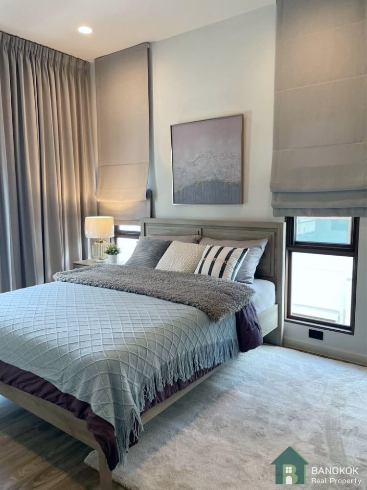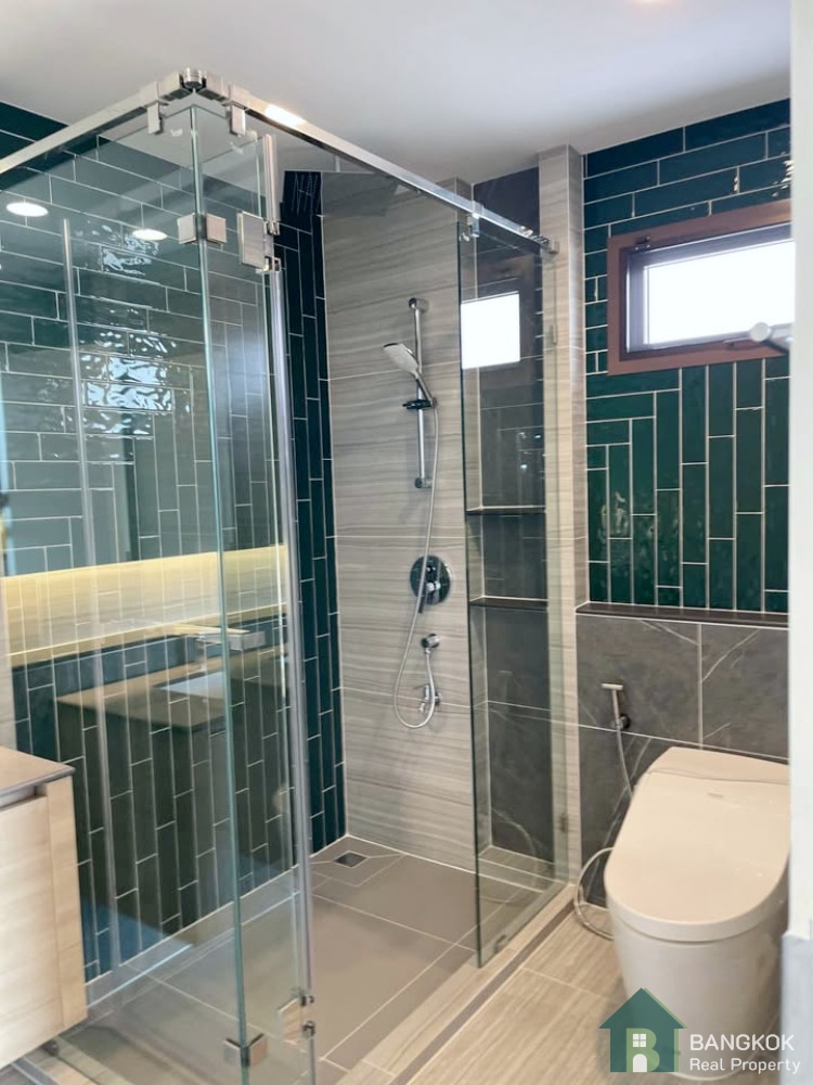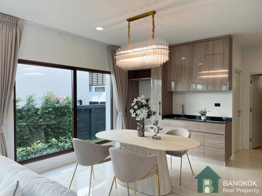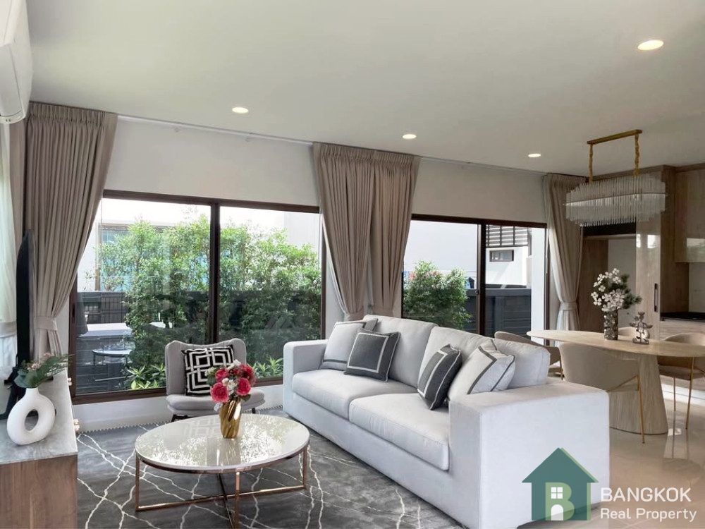 This stylish, fully furnished detached house, set over 2 floors with open plan living-dining with butlers pantry, separate kitchen and 4 bedrooms (3 en-suite), 4 bathrooms, 238 sq.m of living space with garden and cover parking for 3 cars with EV Charger on a plot of 65.2 sq.wah (260.8 sq.m)