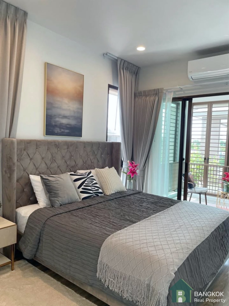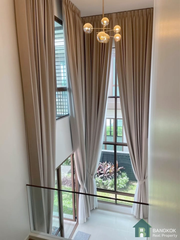 This gated village just completed in 2022 by SanSiri, covers 85 Rai (34 acres), has a prime location, walk to Brighton Collage Bangkok (22 mins), near Wellington College, Ascot, International Schools, MRT Yellow Line, Expressway and Suvarnabhumi International Airport.