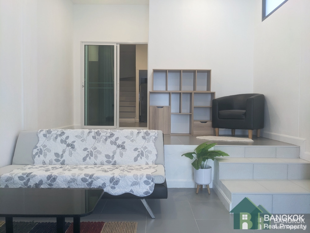 This modern, spacious 1+1 bedroom apartment is available to rent ideally situated within the very popular Sammakorn Village located just off Ramkhamhaeng Road. Located near the Sammakorn Place Shopping Mall, the apartment has access to the village amenities including Villa Market, Paseo Town mall, Golden Place, The Mall Lifestyle, several top international schools including Bromsgrove, Brighton, Ascot and Ruam Rudee Schools.