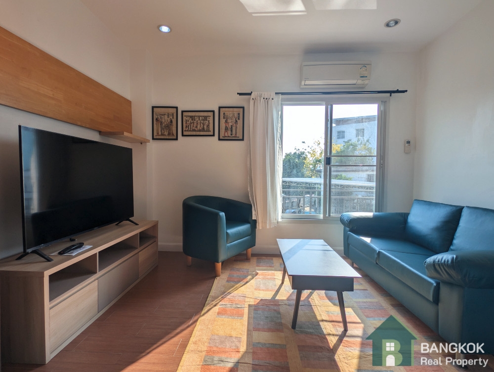 This modern, spacious, 1+1 bed apartment is available to rent ideally situated within Sammakorn Village located just off Ramkhamhaeng Road. This modern low rise apartment building built in 2012 is located near the village centre with many shops, restaurants etc, with several top international schools including Bromsgrove and Ruam Rudee (RIS) and Ascot Schools.