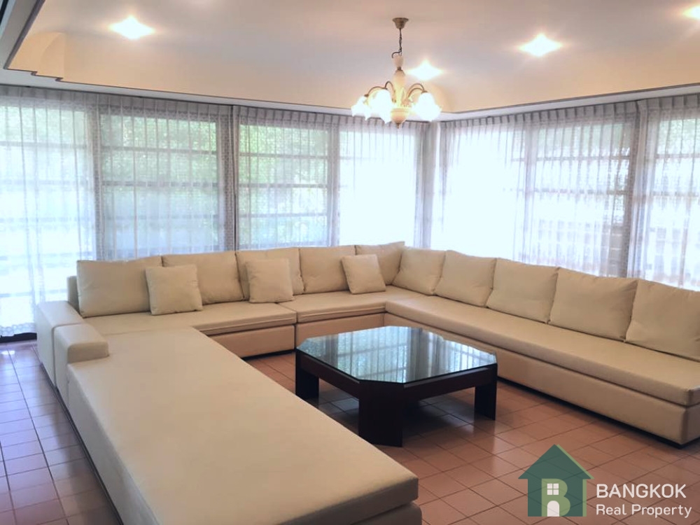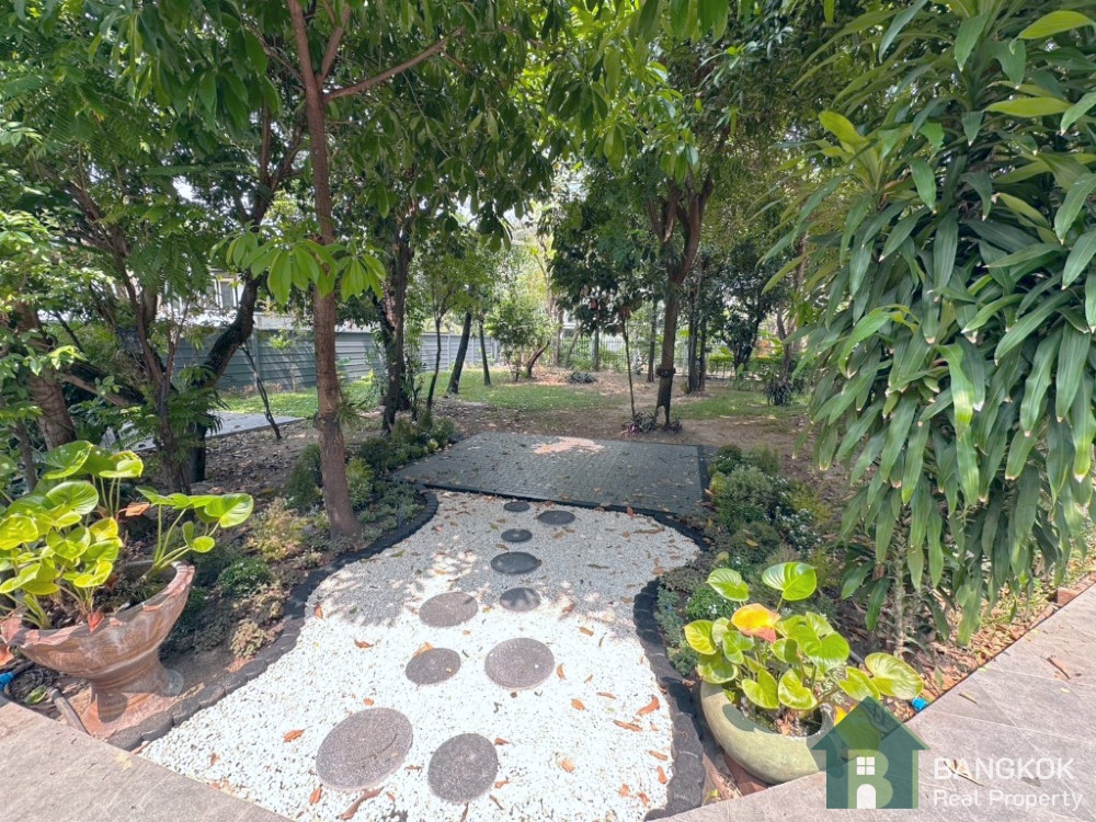 The house has c. 2,000 sq.m of living space, lush garden with lawn and mature trees, large terrace, on plot of 339 sq.wah (1,356 sq.m) with parking for up to 15 cars.