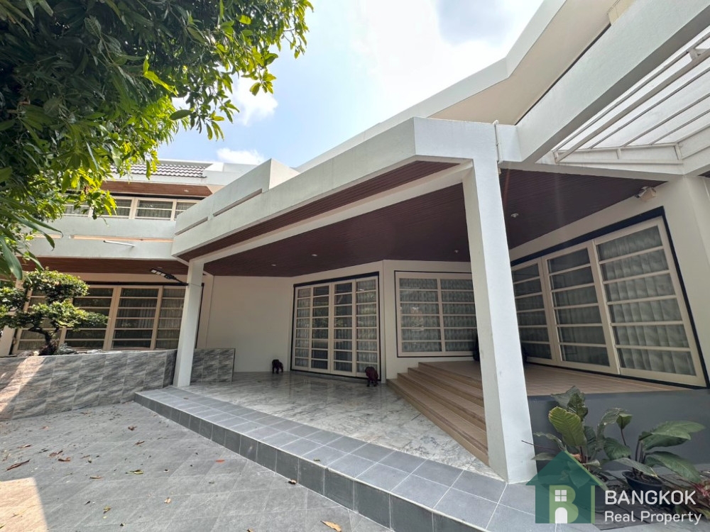 This very spacious, detached 4+1 family home is available to rent in Phra Khanong, located just off Sukhumvit 71 The house is just18 minutes walk (1.4KM) from Bangkok Prep Main Campus. BTS Phra Khanong (Green Line) is just an 8 minute drive (2 KM) away.