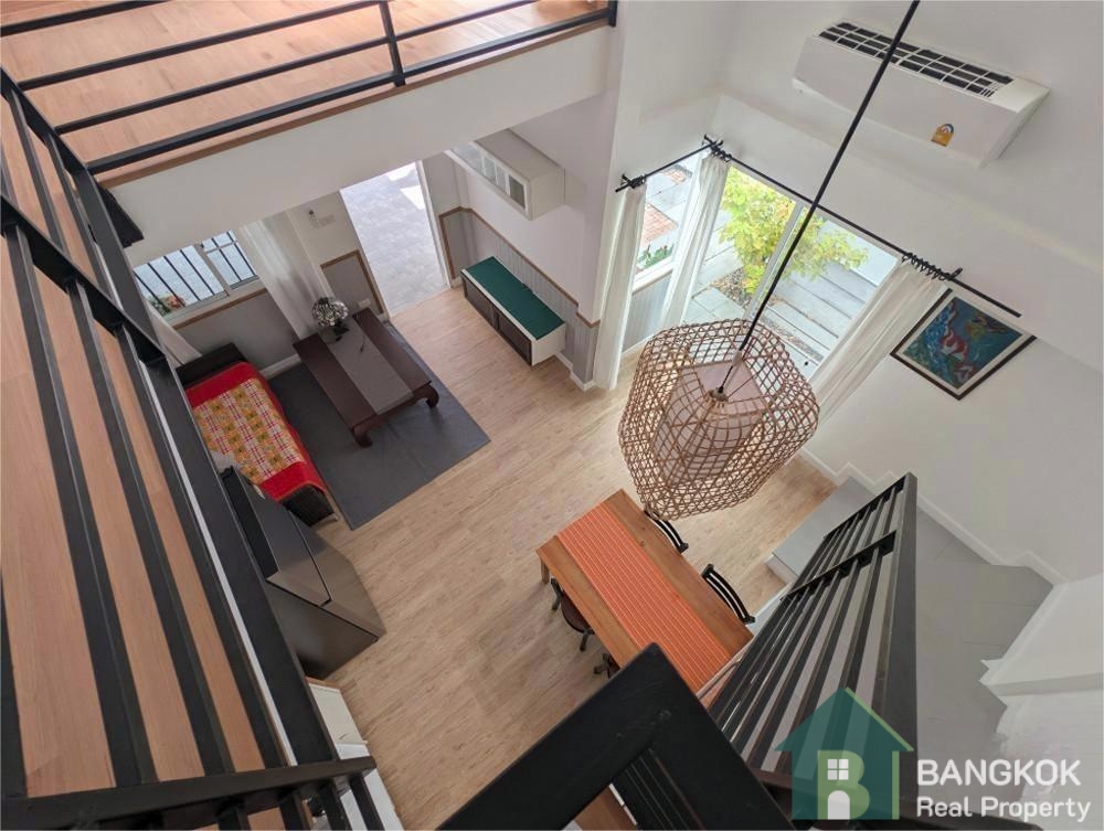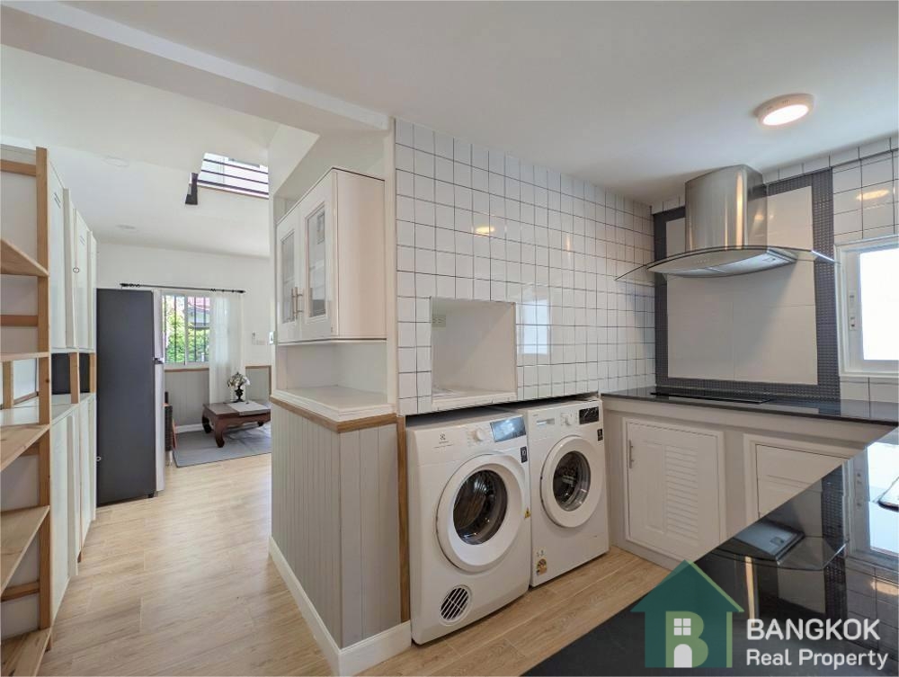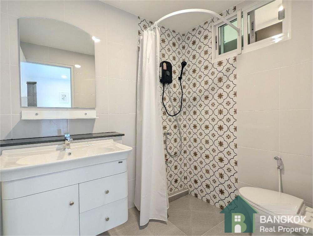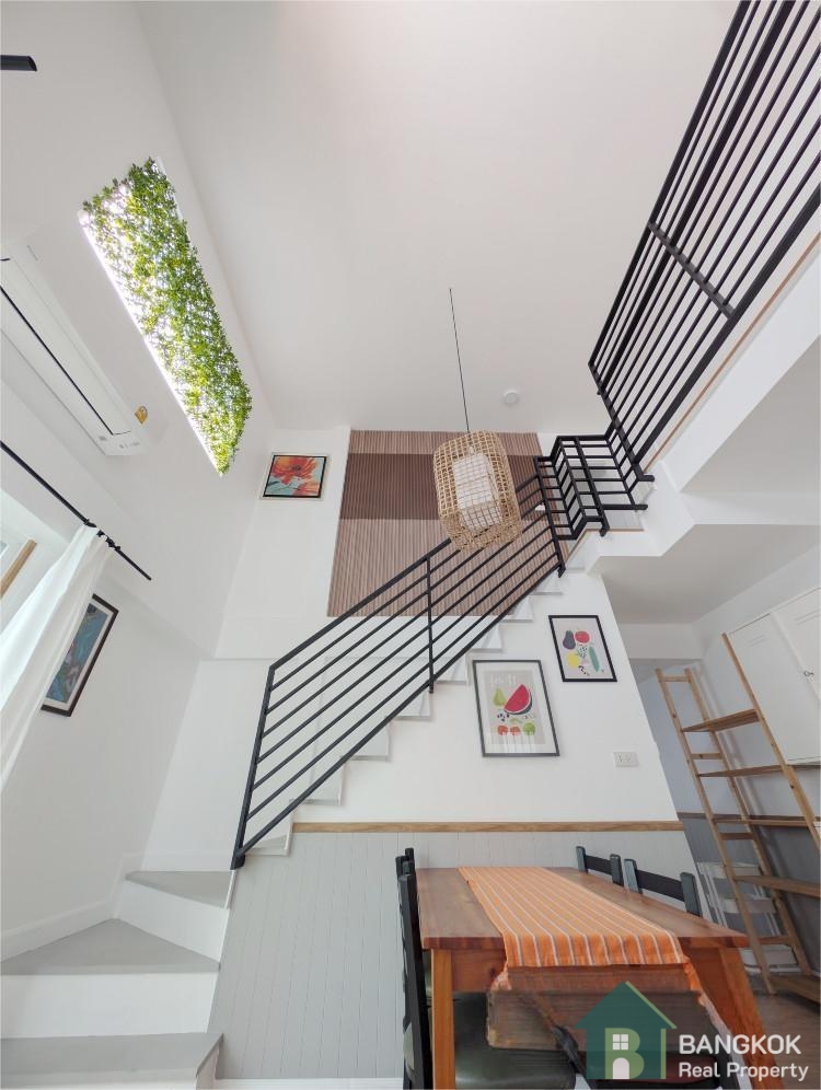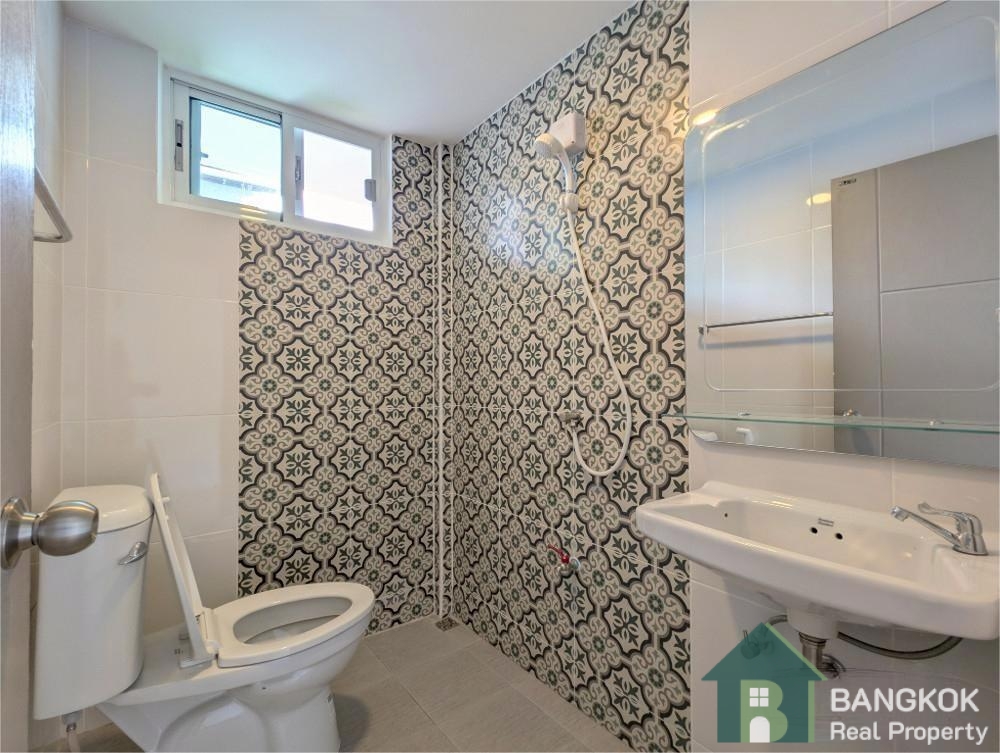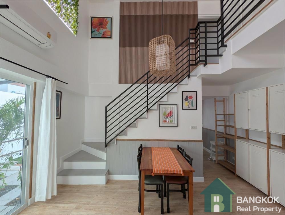 This newly renovated, spacious, twin (semi-detached) 3 bedroom house, just completed in late 2025, is available to rent ideally situated within the very popular Sammakorn Village located just off Ramkhamhaeng Road. Located in a quiet residential area of the village near the many lakeside restaurants and other amenities.