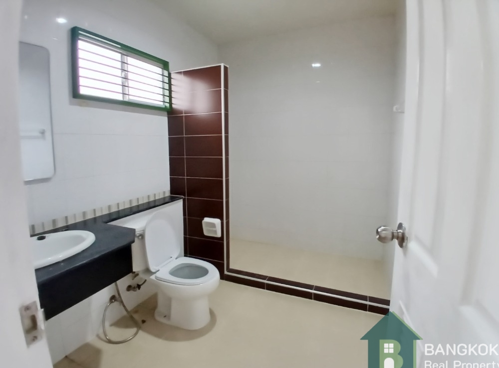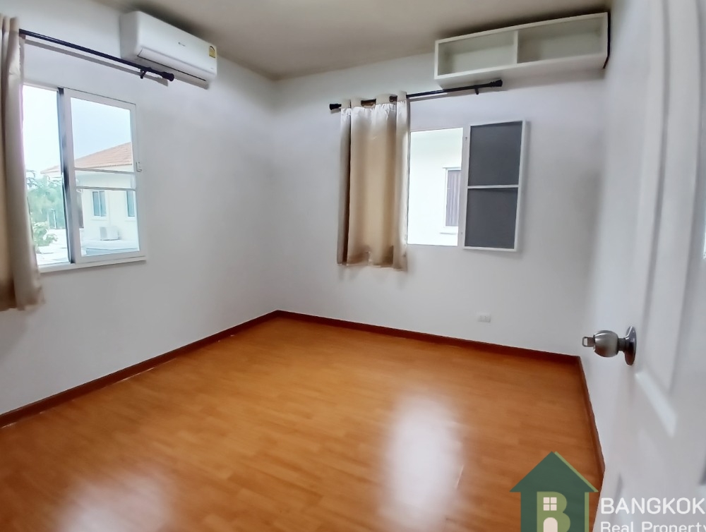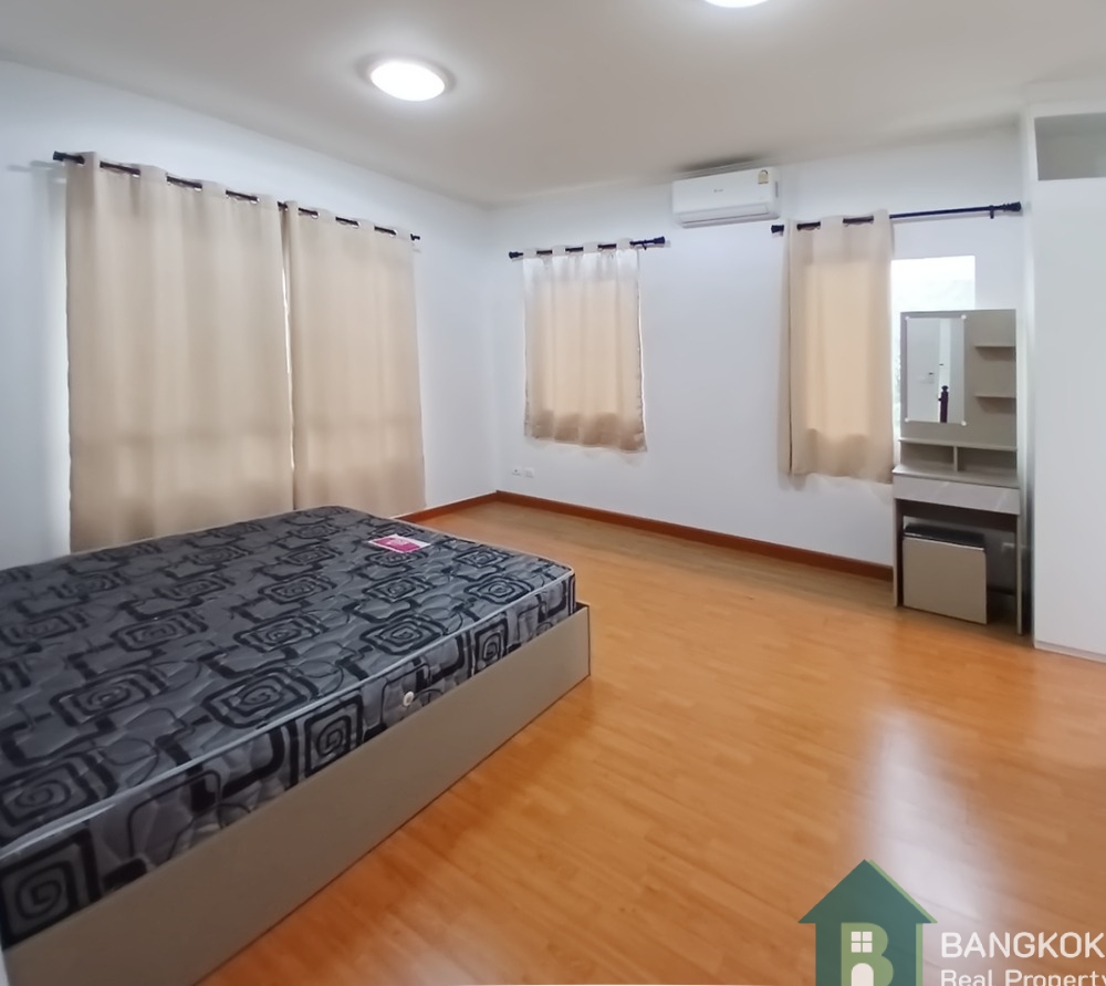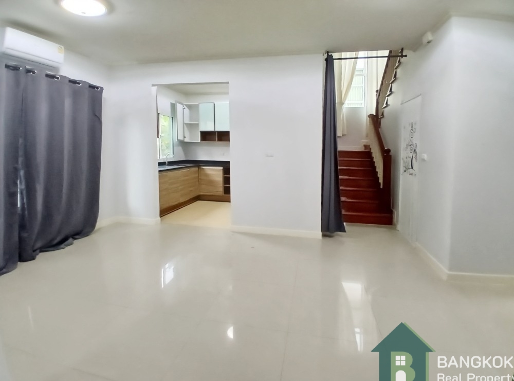 The spacious, detached 3 bedroom house is available to rent, located in a secure, gated village just off Suwinthawong Road in Nong Chok.
