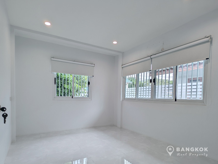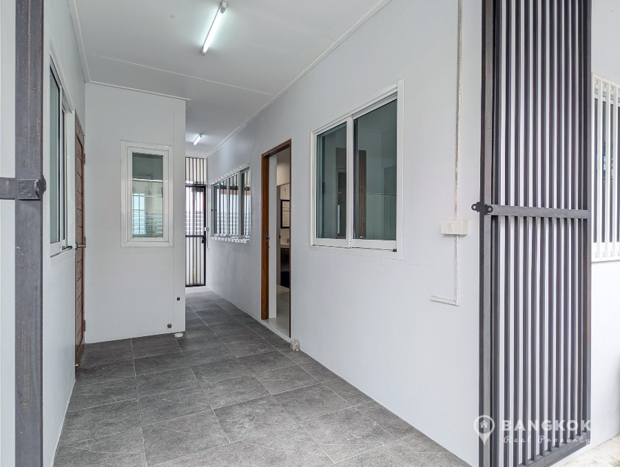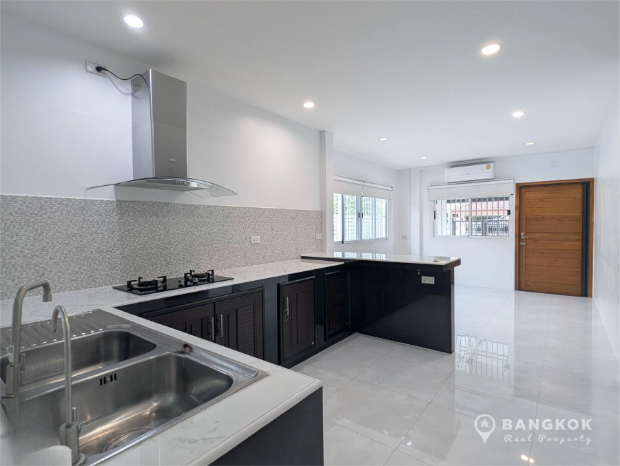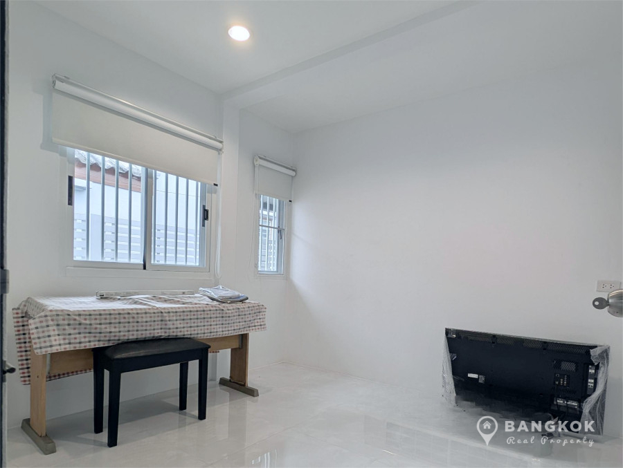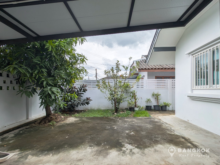 A renovated, detached, single storey, 3 bedroom house is now available to rent in Sammakorn Village located just off Ramkhamhaeng 112 road. This house is situated in a quiet “leafy” residential area of the Village.