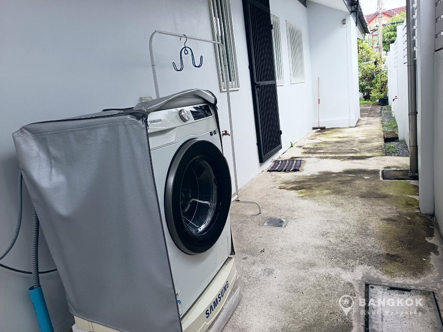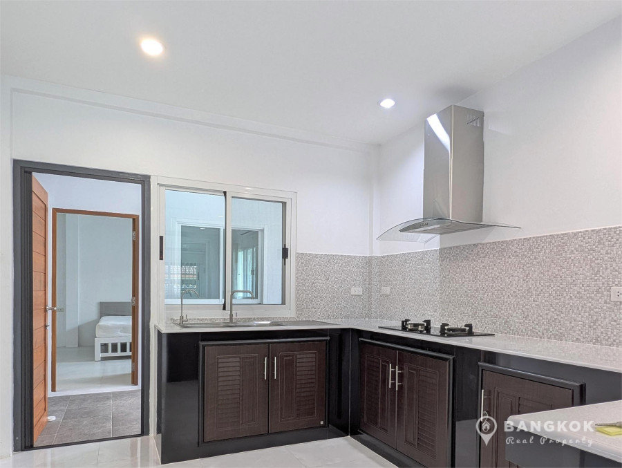 This detached house on 1 floor has 3 bedrooms, 2 bathrooms, open plan Living – Kitchen and 125 sq.m of space of living space and garden on a plot of 50 sq.wah (200 sq.m) with off street parking for 1 – 2 cars.