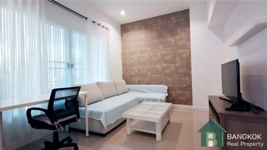 A spacious, modern, 2 bed apartment is available to rent in Sammakorn Village in Ramkhamhaeng ideally situated within the very popular village located just off Ramkhamhaeng Road. This modern low rise apartment building built in 2017 is located near the village centre with many shops, restaurants and and offers access to local amenities including Villa Market, Paseo Town mall, Golden Place, Bangkapi Mall, several top international schools including Bromsgrove and Ruam Rudee Schools.