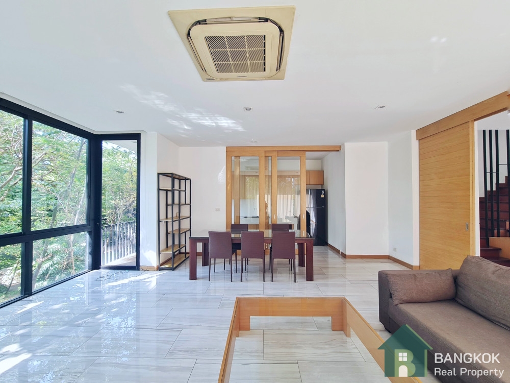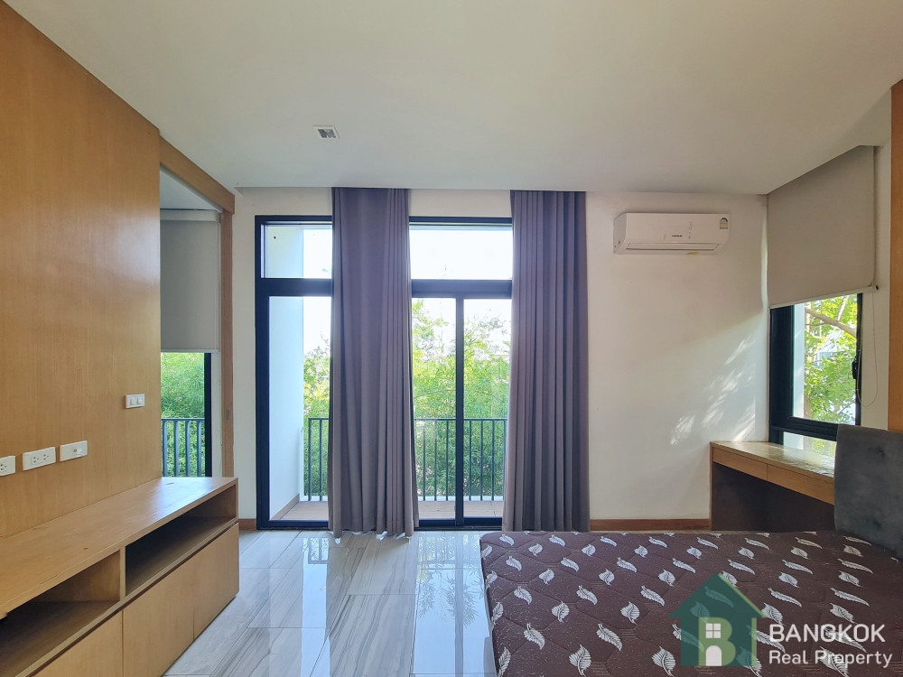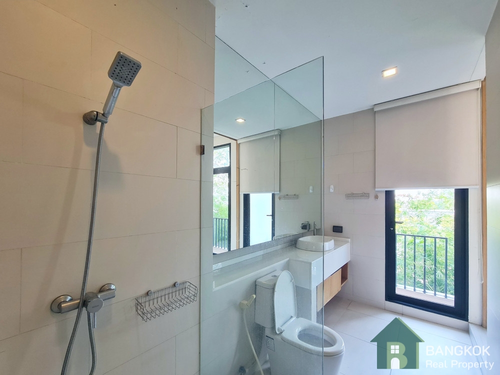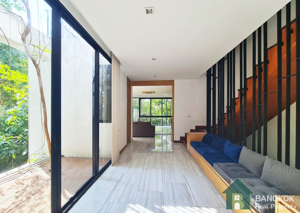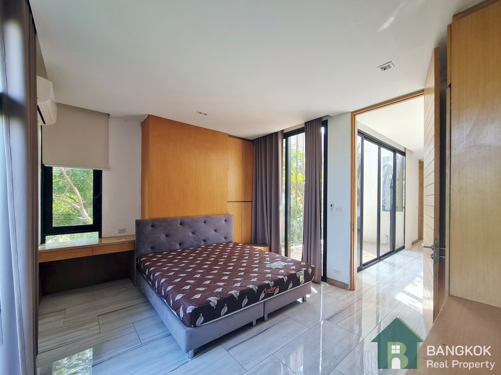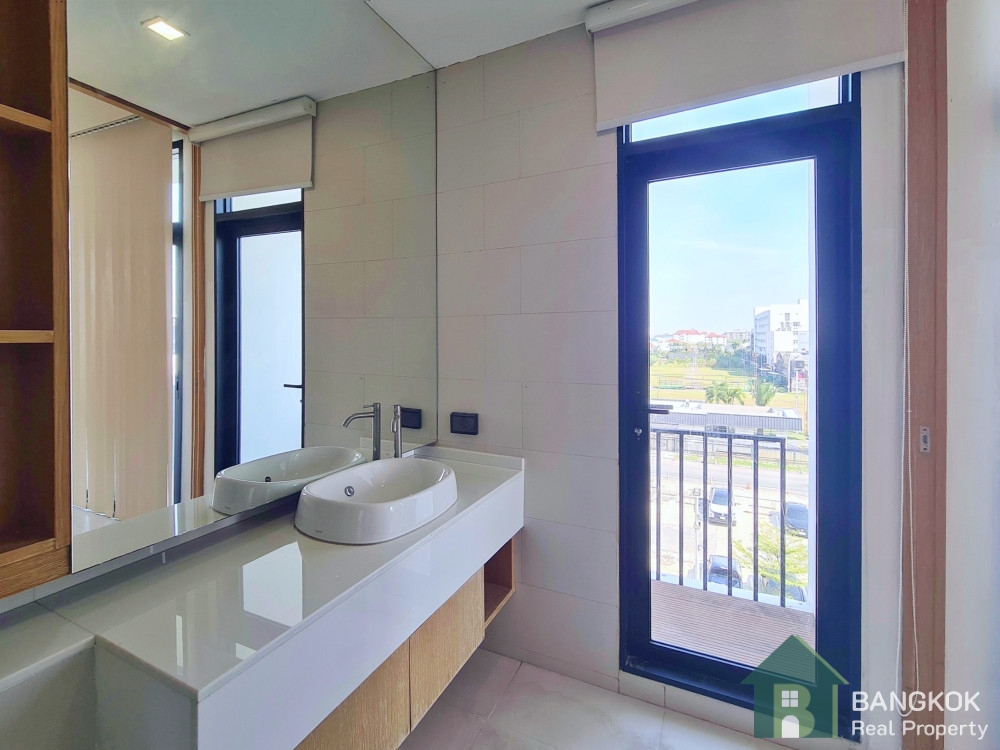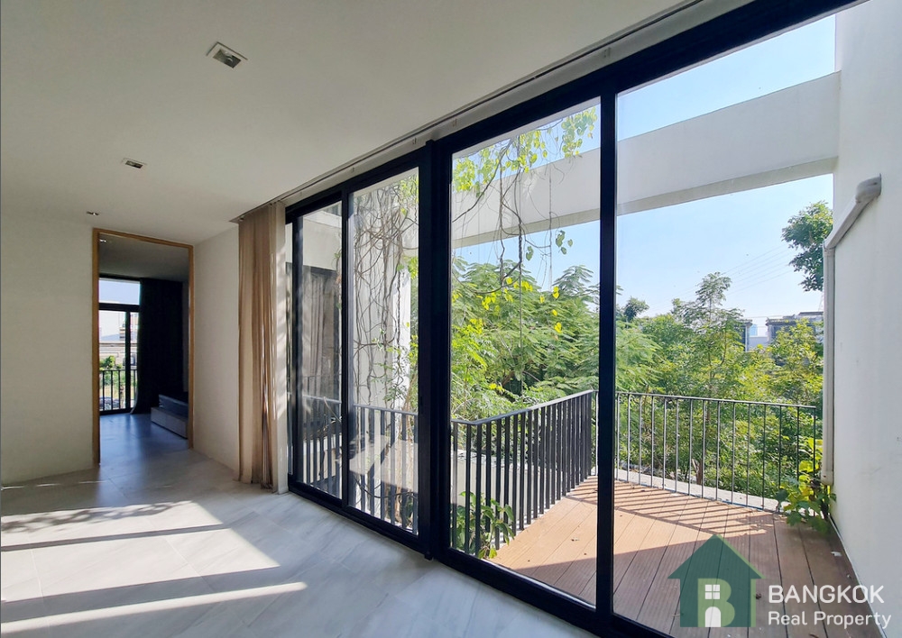 This townhome is et over 3 floors, with 5 bedrooms, 6 bathrooms, bright living room with garden views, private roof terrace, 450 sq.m of living space. The house sits on plot of 35 sq.wah (140 sq.m) with covered off street parking.