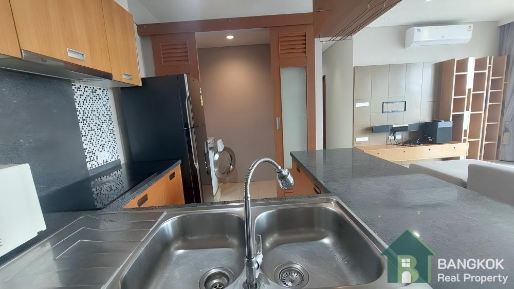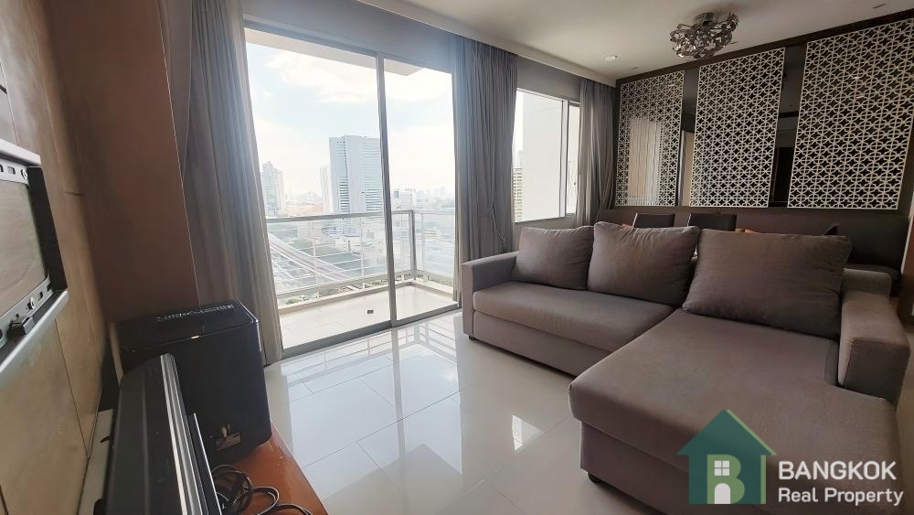 On a mid floor of Villa Sathorn this spacious condo has 2 double bedrooms, 2 modern bathroom and 90 sq.m of living space with a balcony and great city views.