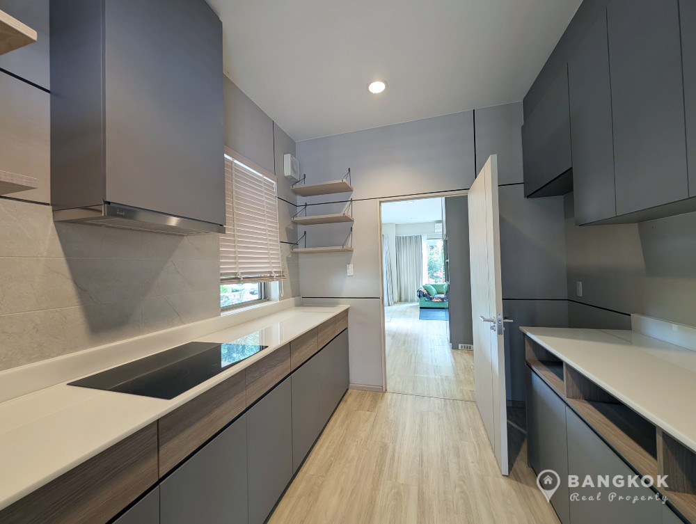 The house is set on 2 floors, renovated and refurbished in 2025, has 4 doubled bedrooms (all en-suite), 5 modern bathrooms, open plan living dining with large terrace, butler pantry, separate western kitchen, outside bathroom, with 275 sq.m in living space (excluding terrace) and on a plot of 133 sq.wah (532 sq.m).